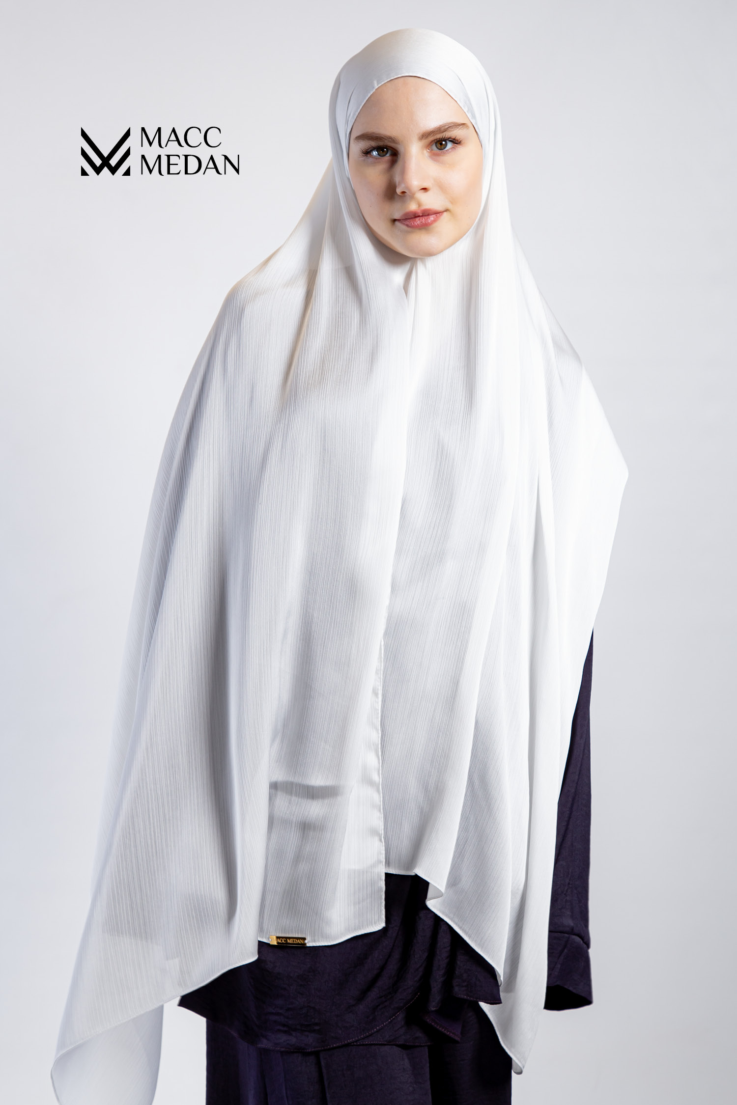 Ein besonderer Blickfang ist die vergoldete rechteckige Maccmedan-Logobrosche, die dem Hijab einen dezenten, aber eleganten Akzent verleiht. Erhältlich in den stilvollen Farbtönen Cremeweiß, Beige, Rosa, Nude und Schwarz, lässt sich dieser Hijab vielseitig kombinieren und verleiht jedem Outfit eine besondere Note.