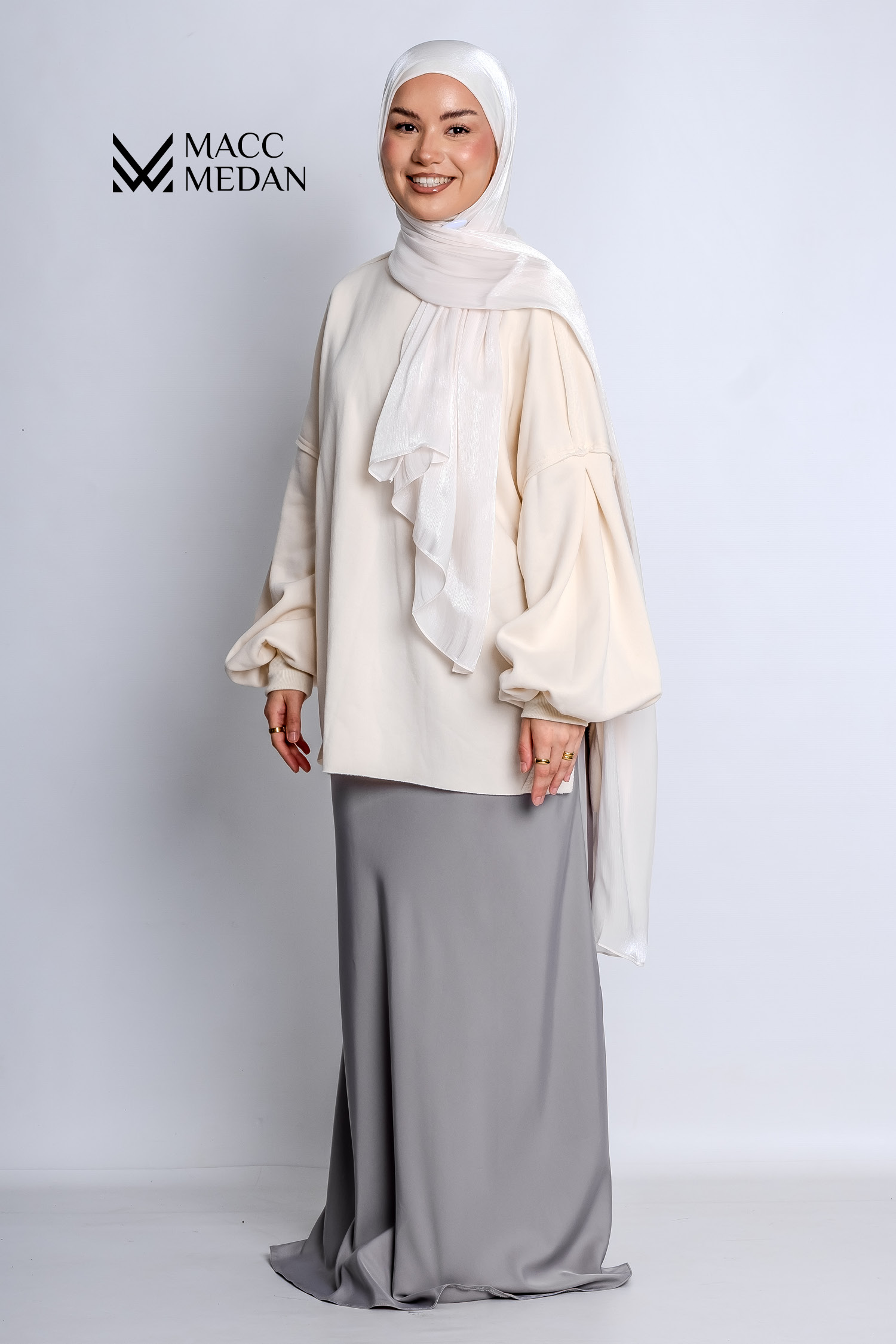 Gefertigt aus einem hochwertigen Mix aus 70 % Baumwolle und 30 % Polyester, überzeugt der Pullover durch ein angenehmes Tragegefühl und eine langlebige Formstabilität. Die glatte Haptik und das atmungsaktive Material machen ihn zur idealen Wahl für jede Jahreszeit. Der Oversize Fit in One Size umhüllt sanft den Körper und bietet sowohl Komfort als auch eine stilvolle Präsenz – ganz im Sinne moderner Modest Fashion.